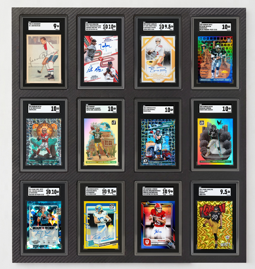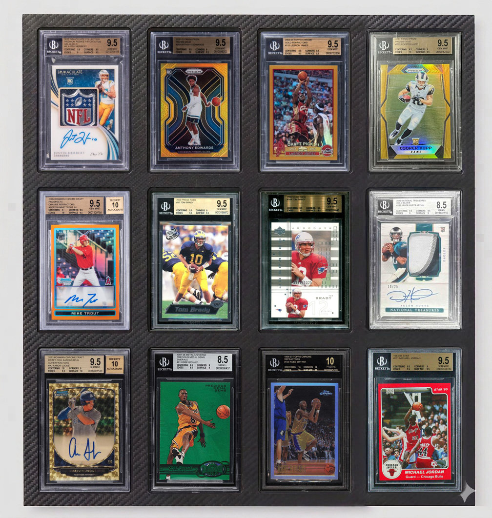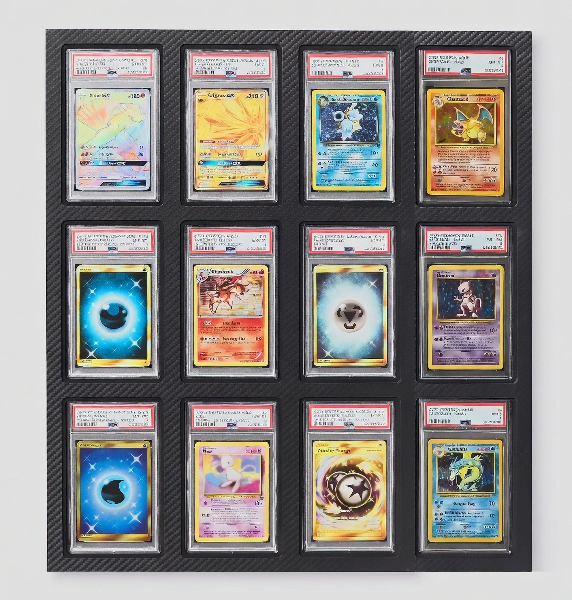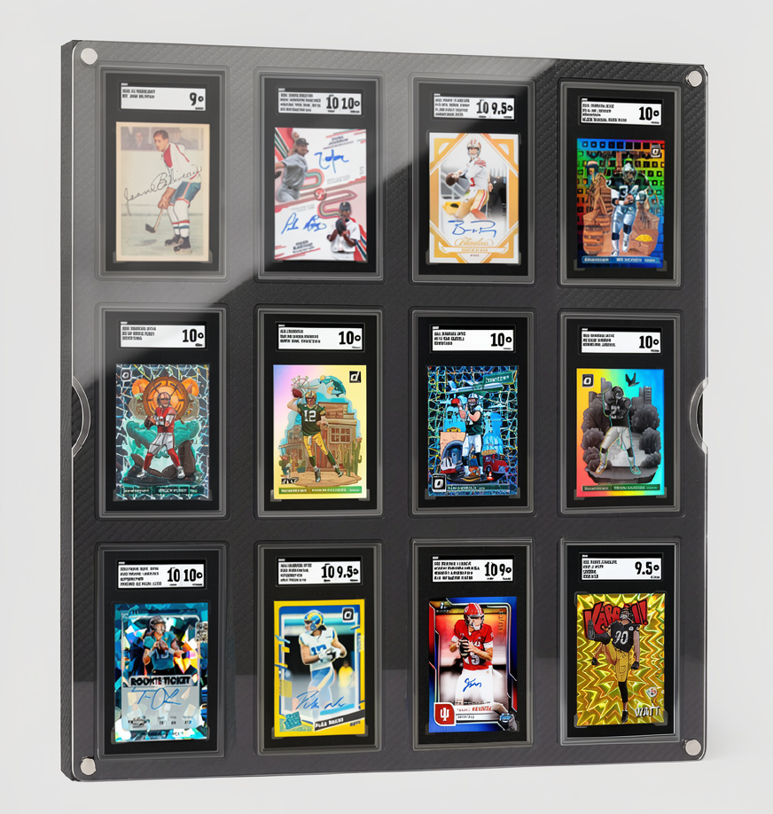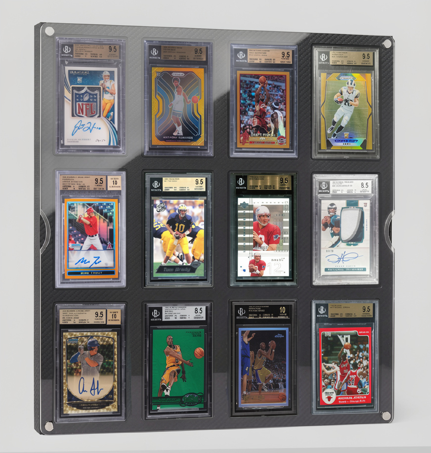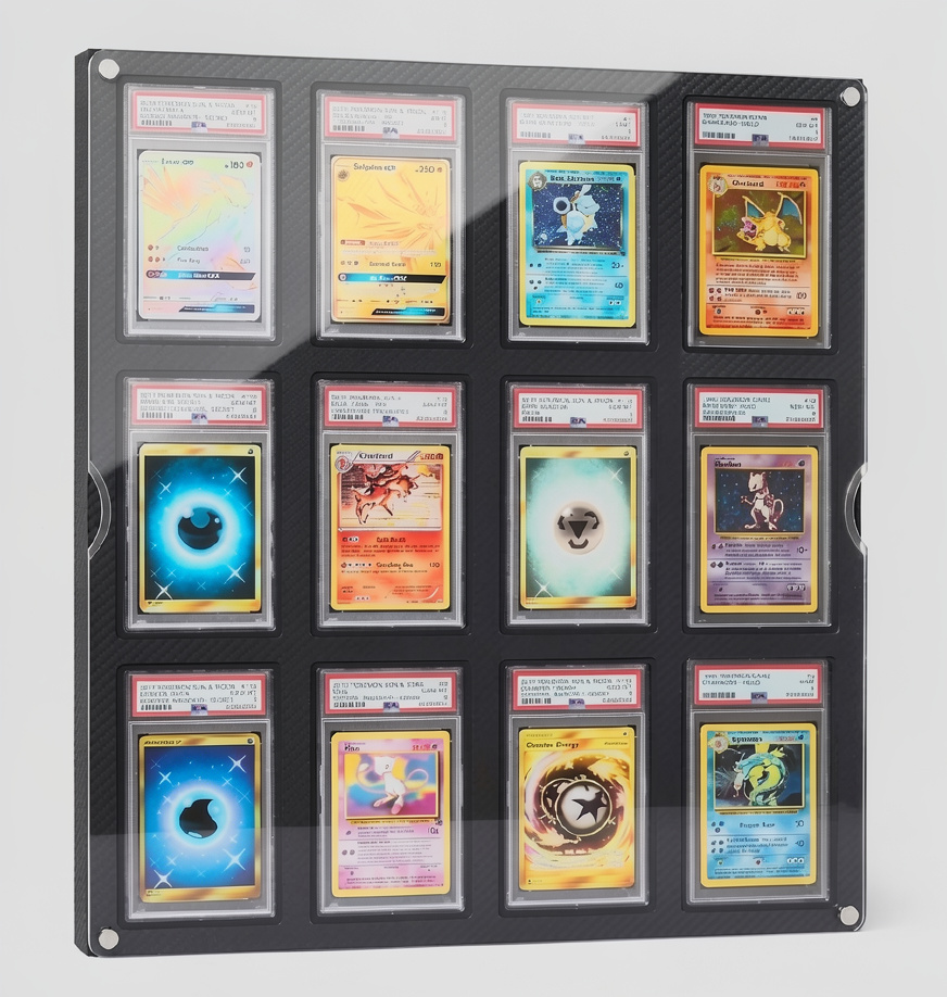 Our carbon fiber cases feature clear acrylic UV protection and magnetic seals, ensuring your most valuable cards remain in mint condition while on display.